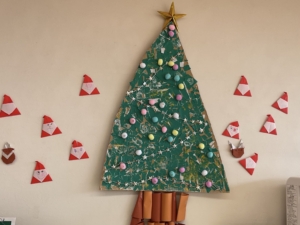 みんなで作ったツリー🎄も飾って、どこかでサンタさんも見てるかな〜?