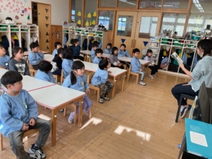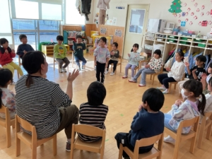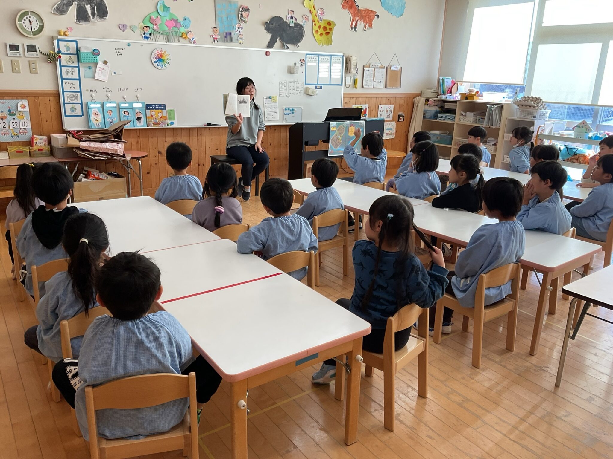 あおぞらぐみでは、「エルマーとりゅう」の読み聞かせをしていました。