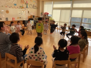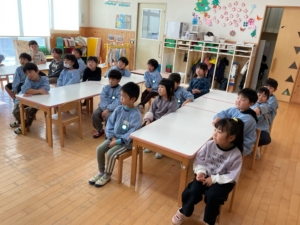 どんな登場人物かな、エルマーは何と出会うのかな、お話を聞いて、想像して。みんなの中のエルマーは、どんな世界にいるんだろうね。 おひさまぐみは「なんでもバスケット」のゲーム遊び クロミちゃんが好きな人〜 鉄道が好きな人〜 いろいろなお題をしっかり聞いてお引越し! ことりぐみのクリスマス製作が飾られていました。かわいいサンタがいっぱいです。明日は幼稚園のクリスマス会🎄。遠くから鈴の音が聞こえてきそうです🛎️