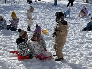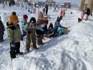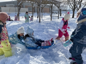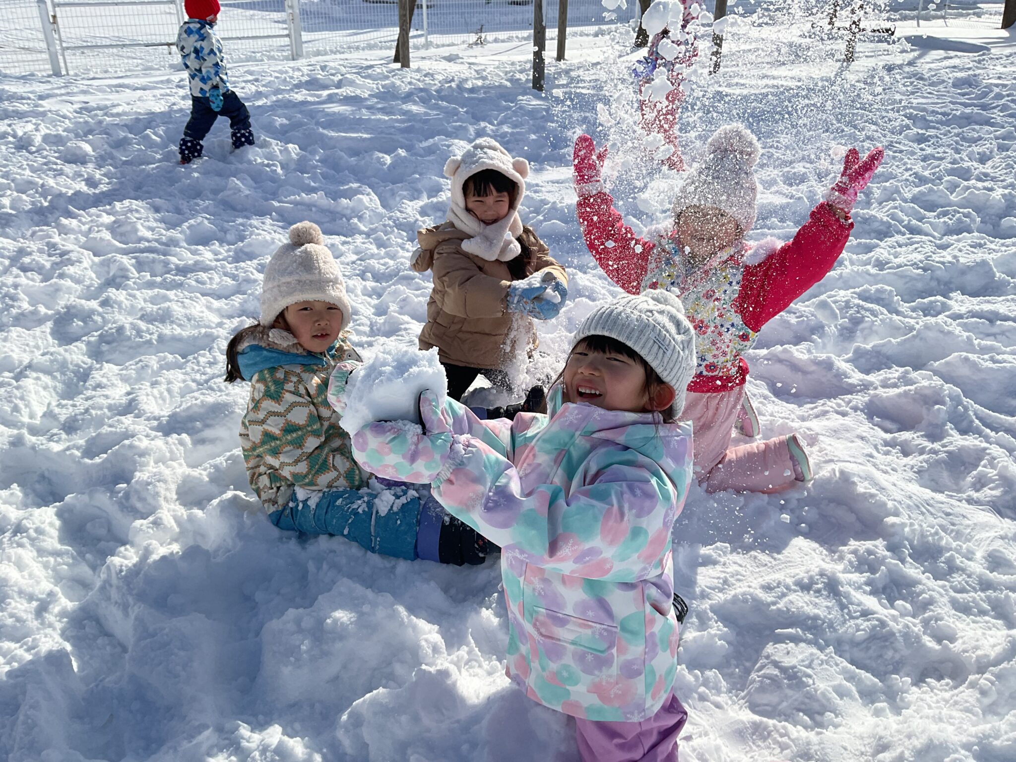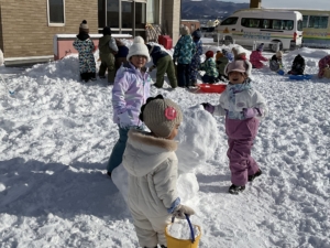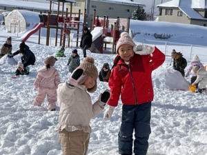 今日はおひさまが出ていい天気☀️子ども達も園庭の雪でたくさん遊びました〜!