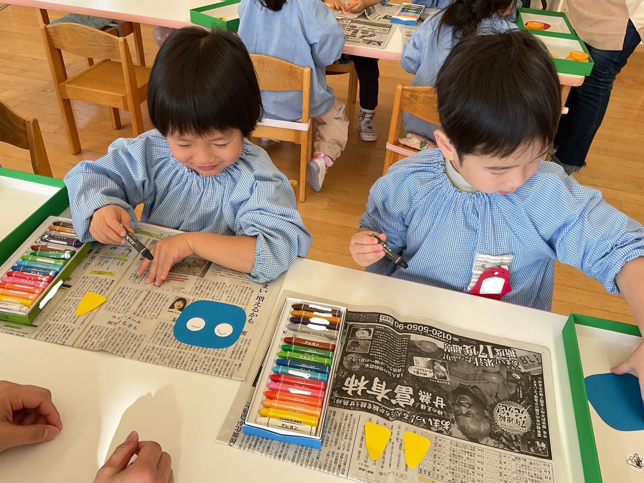 ことりぐみは鬼の目を描いたり、のりで髪の毛やツノを貼りました。