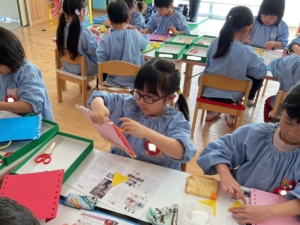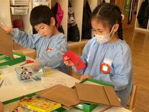 もうすぐ節分ですね。みんなで節分の豆入れを作りました。