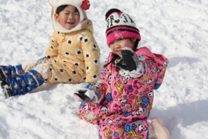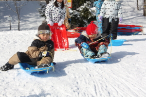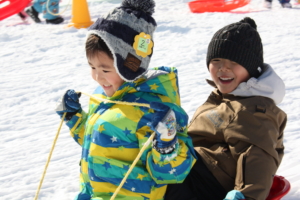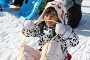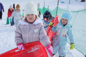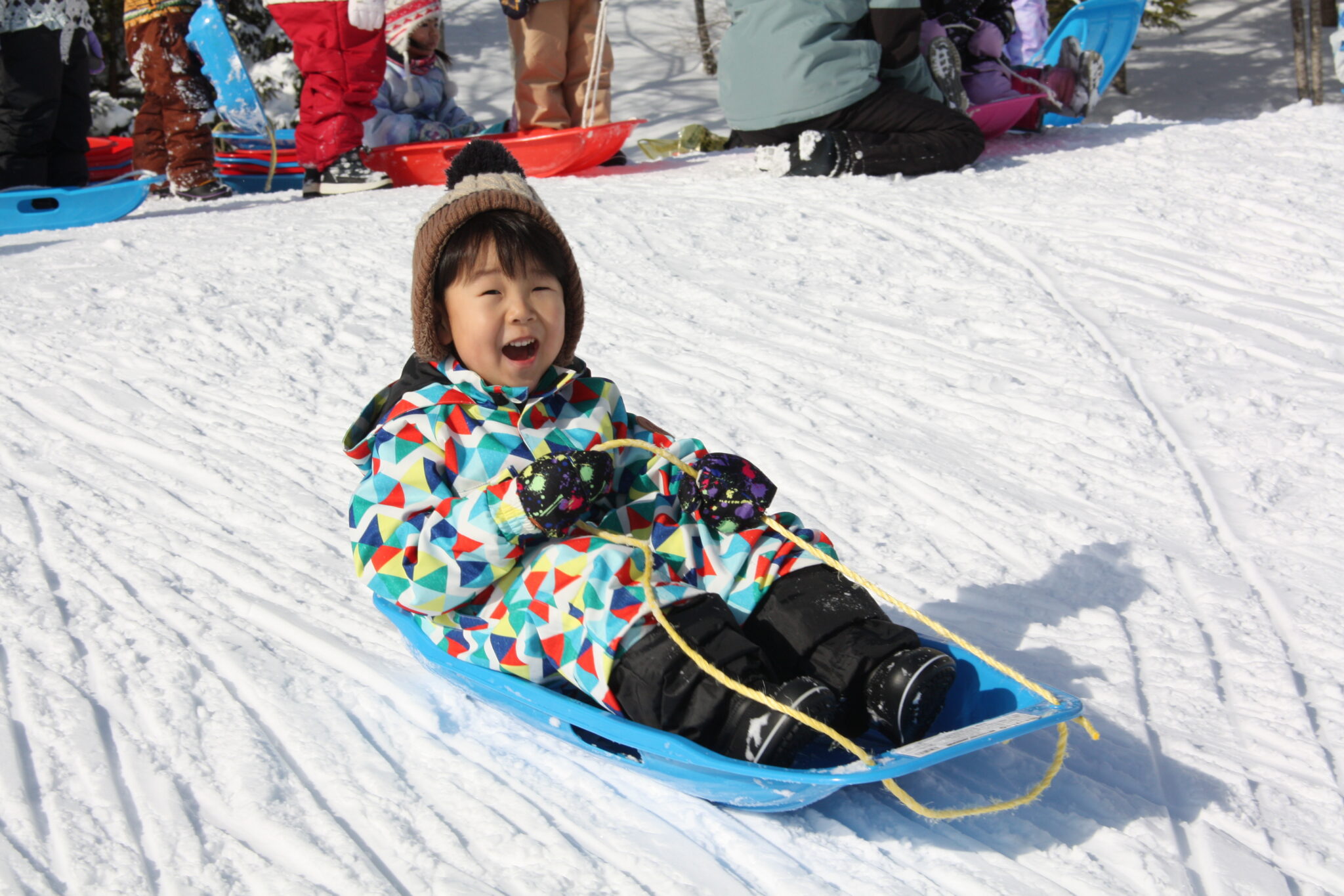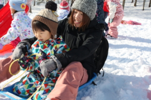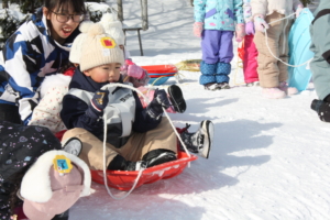 わ~い♪スピードも出て楽しい~‼幼稚園の坂より大きくて、思い切り楽しめました!今年はまだまだ雪遊びが楽しめそうです。