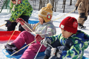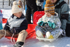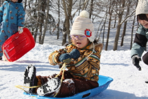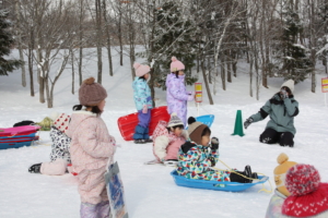 先日、にじぐみ・ほしぐみで四季の杜公園へそり遊びに行きました。 まずはプラスチックそりで、フカフカに積もった雪の坂をつぶしながら楽しもう!
