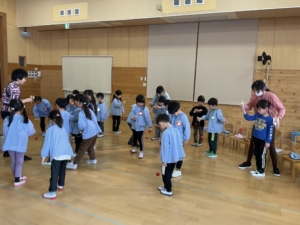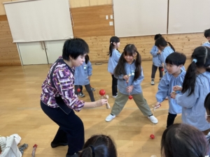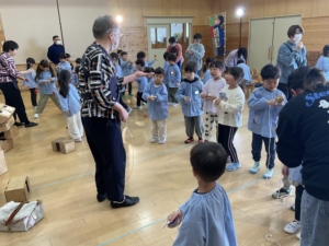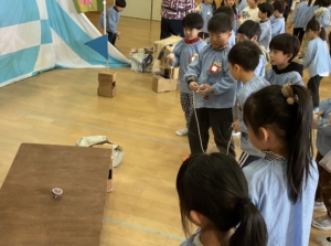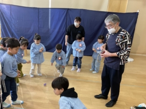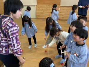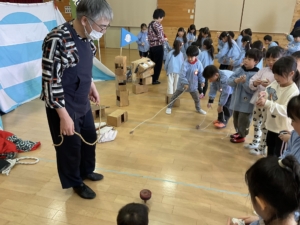 年長さんがコマとけん玉のコツを教えてもらいました。風の子さん、ありがとうございました✨