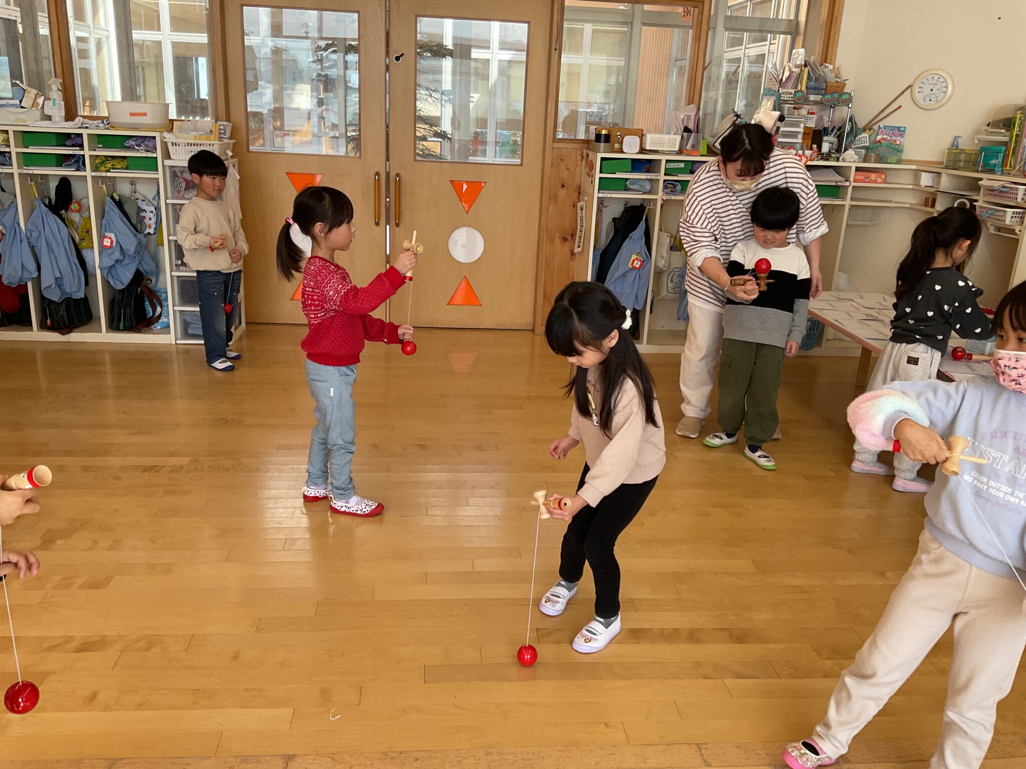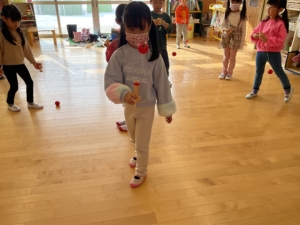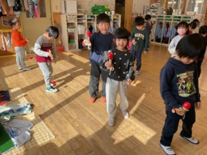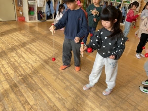 おひさまぐみが、けん玉に挑戦してました。