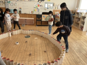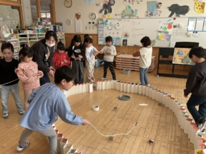 あおぞらぐみはコマ回し!しっかろ紐を巻いて…