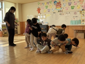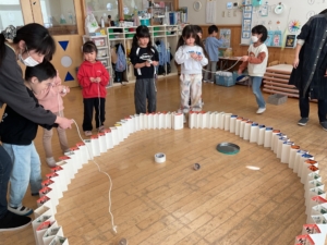 おー!立てた!みんなで息を合わせないとできないね。すごいねー!