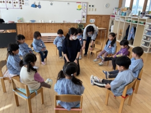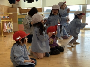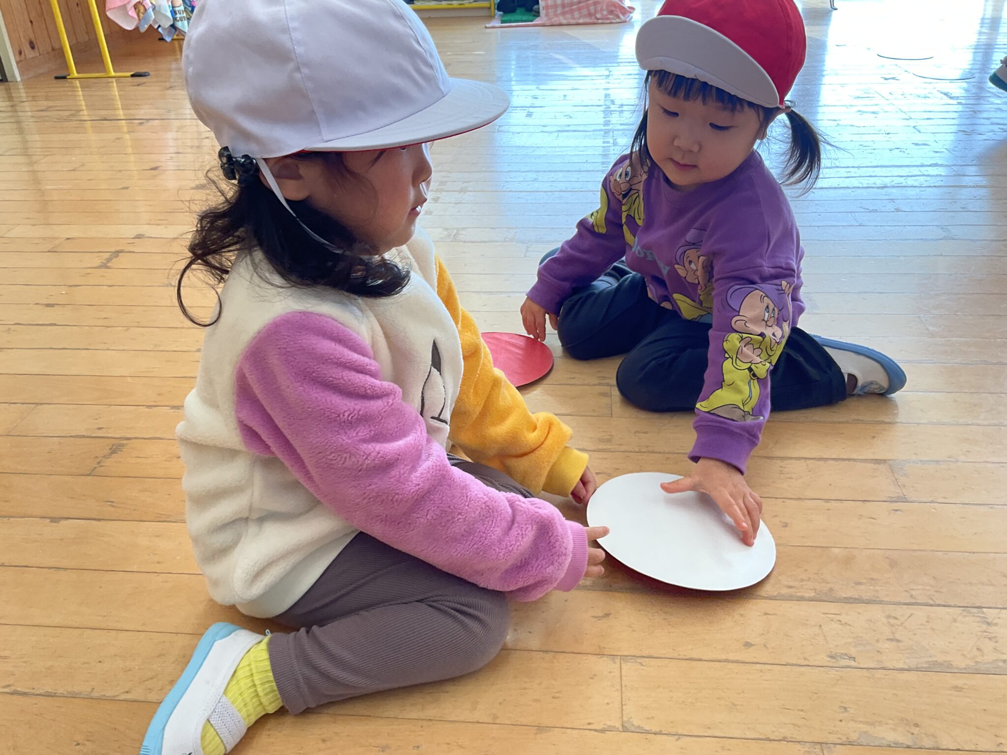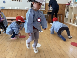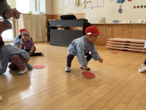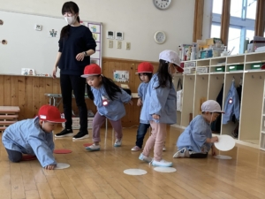 赤白ゲームは自分の帽子と同じ色にひっくり返したよ。みんな上手にできました✨