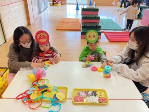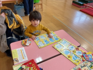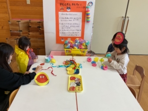 工作や玉入れ、大きなパズル、変身セットがありました。