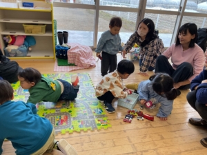 ことり組さんに遊びに行っていたお友達は粘土やミニカーで遊んでいました。