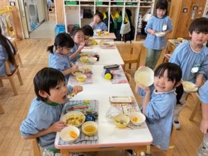 幼稚園で食べる最後のカレー、いつもよりもたくさんおかわりする子が多かったです