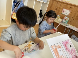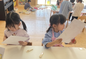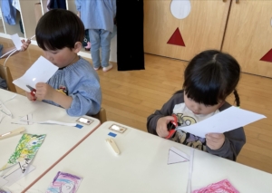にじぐみ、ほしぐみさんがハサミの練習をしていました。
