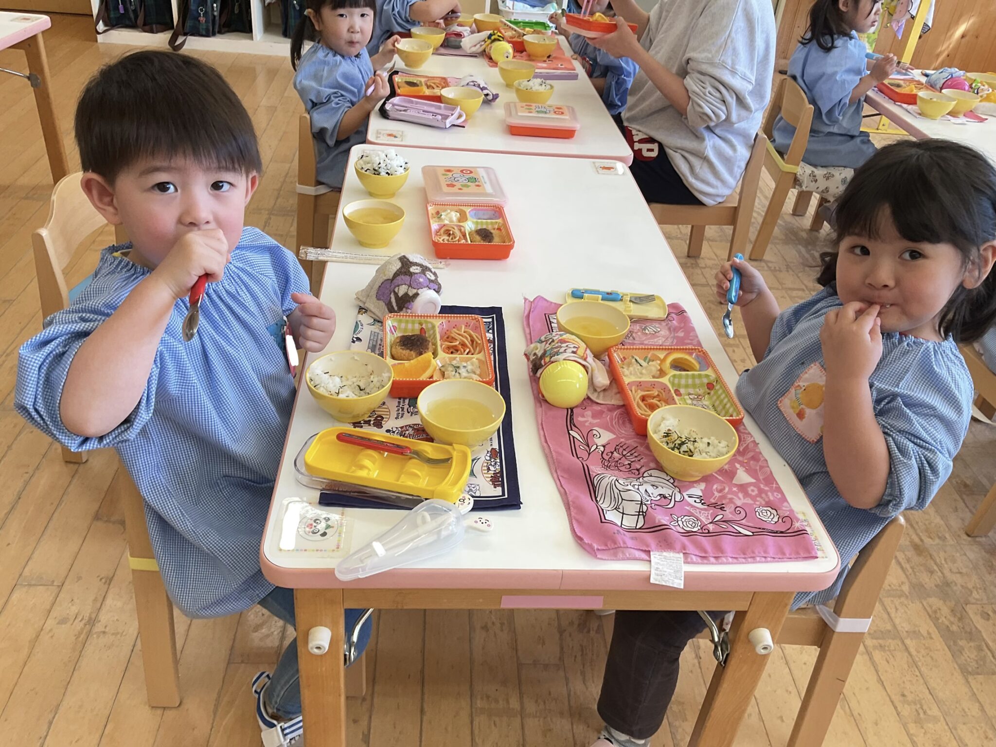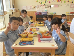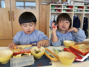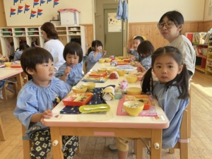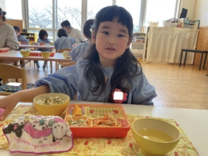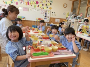 苦手なおかずも、ひとくち頑張るお子さんがいました。「にんじん食べるから見てて」「僕はスープ全部食べたよ」「ご飯お代わりした」と嬉しそうにお知らせしてくれました。