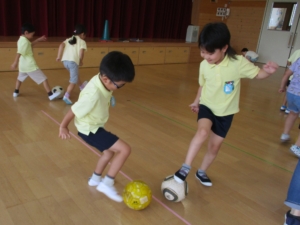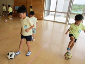 この日のチャレンジの活動はサッカーでした。 ゲームの前には、ボールを使った練習をいろいろ経験しました。 講師の先生の話も、真剣に聞いていますね。 まずはボールを足で止めてみよう。 ボールを蹴って、足で止める…。うーん、難しいけどもっとやってみたい! あ、できたよ~♪先生見て~!上手だね!すごいね☆ コツがわかるようになったら、何度も成功していました。 サッカーって楽しいね!今度みんなでやってみよう♪