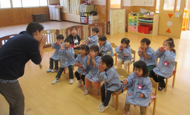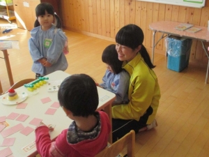 今日は10人の浜分中学校のお姉さんが幼稚園にお勉強に来ました!